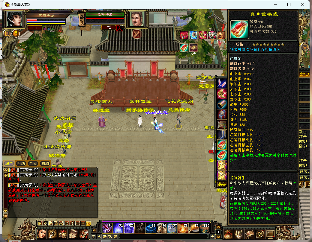 【游戏特色】:大背包、大仓库、恶人谷、武道三、移花神器、属性时装坐骑等