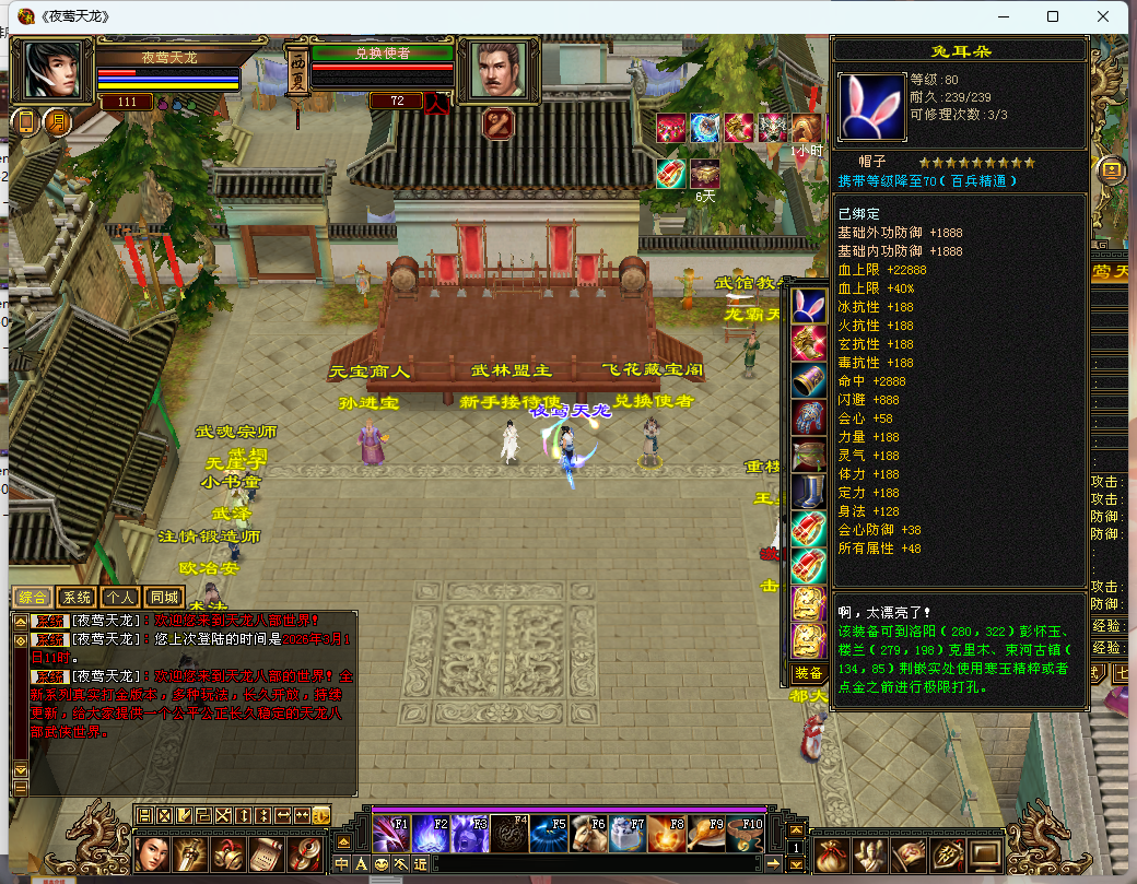 【游戏特色】:大背包、大仓库、恶人谷、武道三、移花神器、属性时装坐骑等